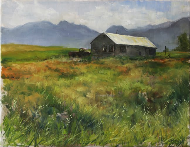 On the last couple days, I finally painted an old house I’ve seen a hundred times driving along a busy street near Boulder. Painting this one took a greater deal of concentration because of hundreds of large trucks passing ten feet behind me at 65 mph. I especially like how remote the place looks while in reality, countless vehicles roar by it all day long.